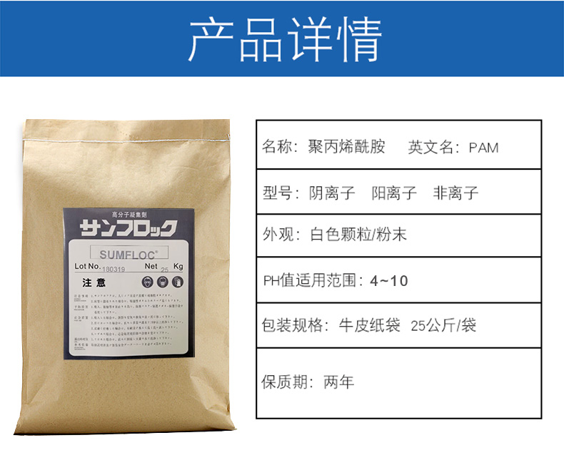 陰離子高分子凝集劑分子鏈中含有基團(tuán),能吸附水中懸浮的固體粒子,使粒子間架橋形成大的絮凝物。其本身是水溶性的高分子聚合物,由于其分子鏈中含有基團(tuán),能通過吸附水中懸浮的固體粒子,使粒子間架橋或通過電荷中和使粒子凝聚形成大的絮凝物,加速懸浮液中粒子的沉降,有較為明顯的加快溶液澄清、促進(jìn)過濾等效果。